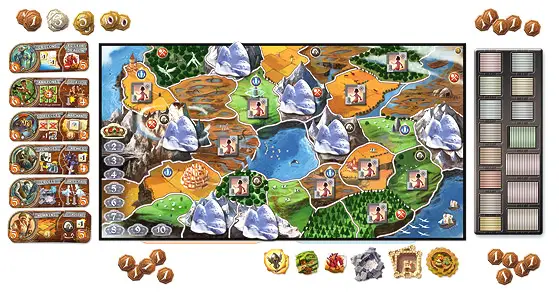 There are 2 double sided boards that come with the game. Each side has a map scaled to fit the number of players from 2 to 5. Maps need to ensure the world is small enough to create conflicts, so the 2 player map has much less room than the 5 player one.