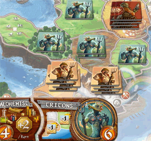 Now, the player picks a number of matching race tokens equal to the sum of the values indicated on the race banner and its associated Special Power badge.