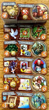 Picking a fantasy Race and Special Power combination, you must use their unique racial traits and skills to conquer adjacent territories to gather victory coins for each Region you occupy at the end of your turn.