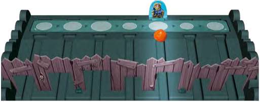 The starting player places his or her sphere on the starting position of the current rolling track. Then he or she gently pushes the sphere so that it rolls toward the hole in the fence.