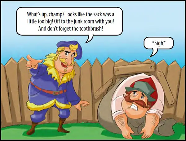 To decide on this matter, big boss Charley himself stages a smuggling contest. It consists of two parts. First, the aspiring smugglers must try to get a piece of contraband that is hidden inside a potato sack of the largest possible size to pass through a hole in the training fence.