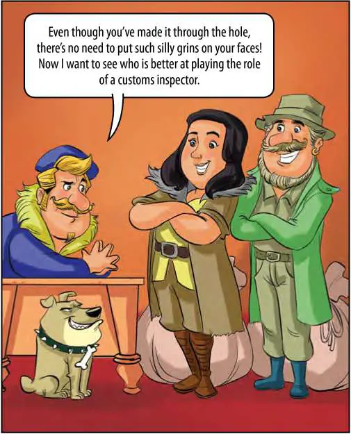 Even though you've made it through the hole, there's no need to put such silly grins on your faces! Now I want to see who is better at playing the role of a customs inspector. V