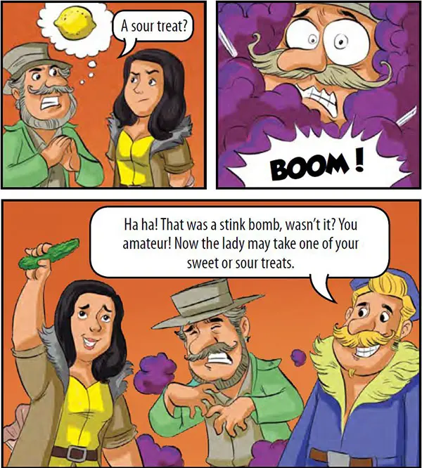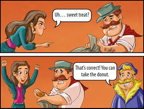 The inspector names the piece of contraband he or she believes to be hidden inside the opponent's sphere, saying either "sweet treat", "sour treat", or "stink bomb".