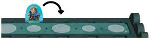 Insert the training fence into position in the lower part of the rolling track as shown, so that the symbols on the outer left and right fence posts coincide with the symbols on the smuggling aid when viewed from the front.