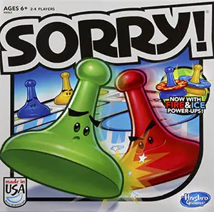 Sorry staat bekend als het spel van de "zoete wraak", omdat spelers elkaars pionnen terug naar de startlijn kunnen sturen. Men kan dus elkaar dwingen om opnieuw te beginnen en dit is best frustrerend voor het slachtoffer, maar wel leuk voor de dader.