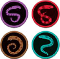 Place one snake token of each color on the matching snake illustration on the board. These are the snake start spaces.