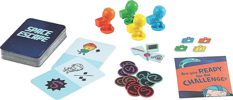 Space Escape is a cooperative game. Players must work together to collect all four pieces of equipment and make it to the escape pod before any one of the following happens: