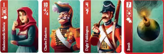Double damage: If your Bomb is activated and you correctly identify the next enemy card this round, you will choose 2 Soldier cards instead of 1 for your opponent to exhaust in the next round.