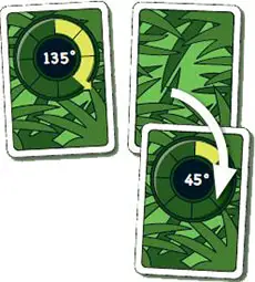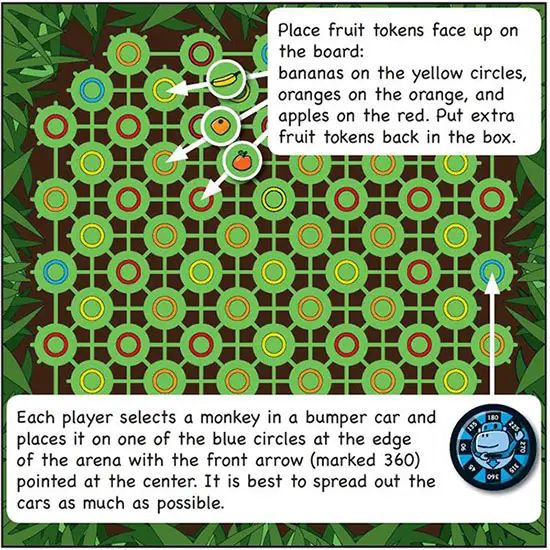 To move, a player rotates her bumper car clockwise to the degree on the card. Then she moves her monkey in the direction of the arrow. The number of junctions to move is determined by the number of cards in her play area (i.e., the player's speed).