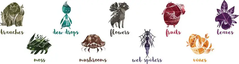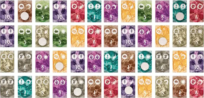 The deck of spirit tiles represents the nine different spirits of the forest. Each spirit is associated with a unique color and a unique spirit animal.