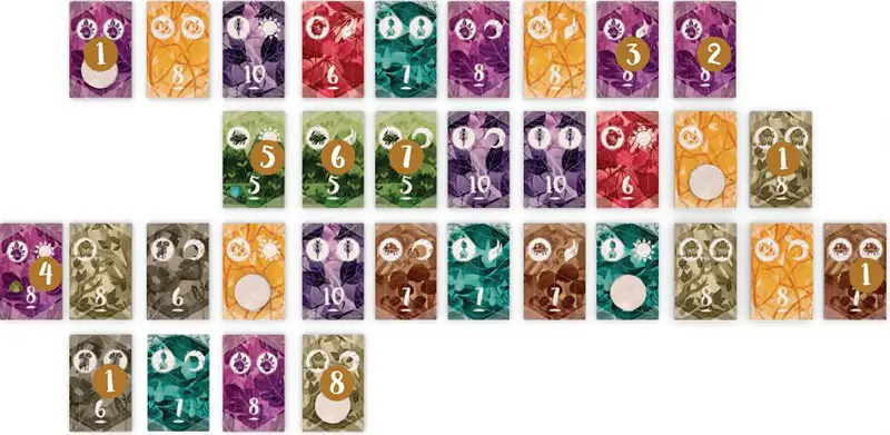 Players continue taking turns until all tiles have been collected from the forest. Then players reveal any favor tokens they've collected and determine how many nature points they have: