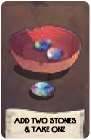 Take Two Stones - Take two stones from the bowl and place them on your scoring board. If there are less than two stones in the bowl, you cannot use this action.
