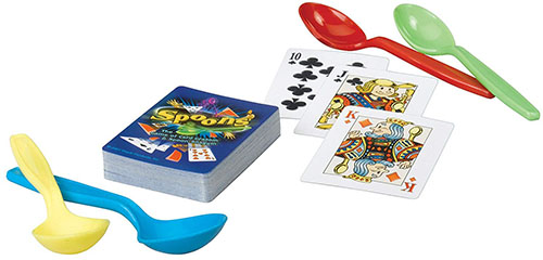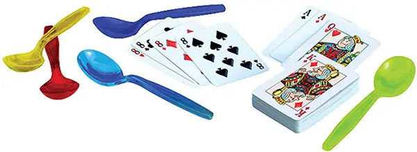 Get four of a kind and grab a spoon! Once a spoon is grabbed, everybody grabs for the rest. Don't be the one left without a spoon!