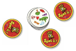 Each player must be the fastest at spotting the identical symbol between his or her card and the first card of the draw pile.