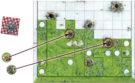 The player with the most points earns a Hiking Pin and must place Marmots over all of their cleared Burrows.
