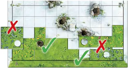 not place a tile so that it covers a Burrow (unless you have a cleared Burrow on your Mountain board).