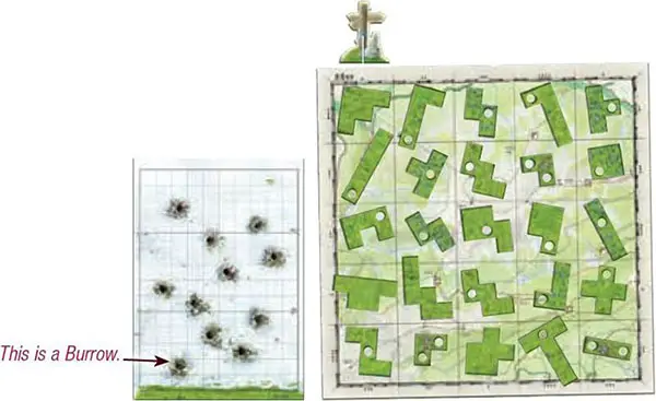 You can see Burrows on every Mountain board. These Burrows count as covered spaces for Scoring and do not need to be covered.