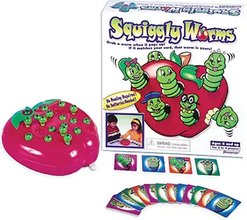 When the timer runs out, another player sets the lever and the game continues until one player gets all five matching worms to win!