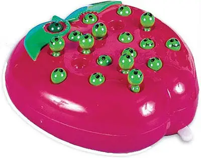 The youngest player starts the game and play moves to the left. To start the apple slide the lever towards the apple top and your turn begins. It ends when worms stop popping!