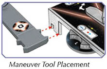 The player places the maneuver tool on one side of his ship so that the plastic guides of the tool's flat end slide into the notches on the side of the ship's base. If properly inserted, the front of the ship should be parallel with the raised line above the guides.