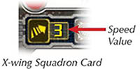 1 The X-wing squadron has a speed of "3", so it can move anywhere within distance 1-3, in any direction.