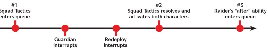 Squad Tactics then activates the Raider and it rolls both its die and its Gaffi Stick die into the pool. The "after" ability on the Raider triggers and enters the queue, and since nothing else is in the queue it resolves.