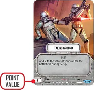 Players may optionally select one plot (but no more than one) when building their team. Each plot has a point value that counts toward the 30 point limit, just like characters. Plots start the game in play and remain in play.