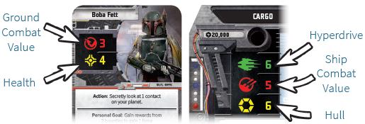 The contact's combat value is listed on the bounty card, as well either a ship or ground combat icon (fight this type of combat). The player seated to your left rolls dice for the contact.