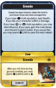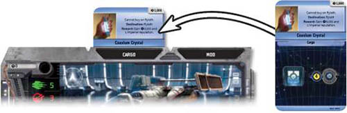 Some encounter cards have a bounty, cargo, crew, job, gear, or mod listed at the bottom of the card. An effect on the card may instruct you to gain that bounty, cargo, crew, gear, job, or mod.