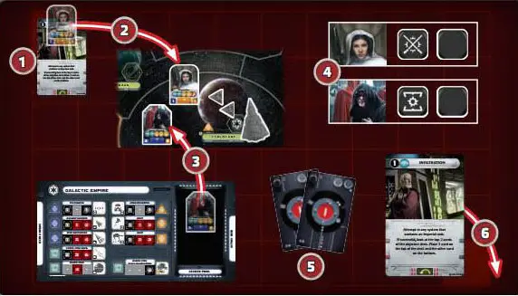 The Rebel player starts by assigning any of his leaders to missions. When he is finished, the Imperial player assigns any of his leaders to missions.