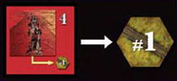 Adjust the players' tokens on the Turn Order Display according to the actions selected at the start of the turn. The order of play goes from lowest value action to highest value action. Mark the new turn order on the Turn Order Display.