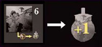 Each scoring player must immediately decide whether to use his track points to increase his income or to increase his victory points. You cannot split your points gained from a single cube movement between income and victory points. (See example at right).