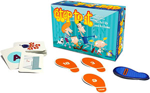 When playing with younger players, disregard the "Hop" and "Jump" on the step cards. Simply use all cards to take steps. Also, you may give them three tries to reach their goal.