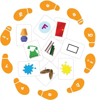 Then choose a goal that you think you can walk, hop, or jump to in exactly that number. Reach your goal and collect a step card. The player with the most cards wins.