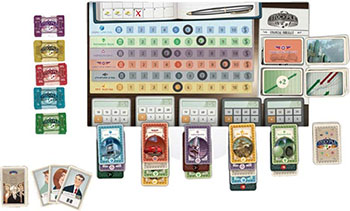1 Pass out a Bidding Meeple, Player Board, and $20,000 in Currency Cards (three $5K and five $1K bills) to each player. Place the remaining currency cards next to the board.