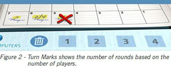 The number of rounds played is based on the number of players as indicated on the board. The Turn Marker tracks the number of rounds left in the game.