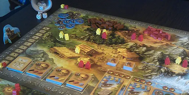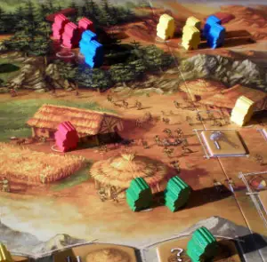 Then the next player in clockwise order follows and must also place 1 or more of his people on one place of his choice. This continues in clockwise order until all players have placed all their people on the game board.
