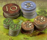 When a player takes one of these buildings, he must calculate the number of spaces (= points) he moves on the scoring track.