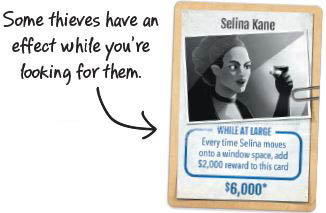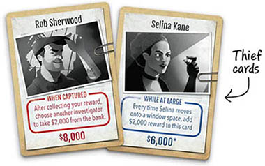 If that happens, take $1,000 from the bank and place it on the thief card. This is an additional reward for catching such a dastardly criminal.