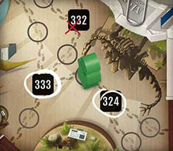 An investigator on this spot could choose to attempt an arrest on space 333 or space 324 (but nof 332 - it is not adjacent).