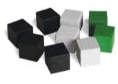 Reinforcement cubes can be collected during each Operation Phase and are used to increase the strength of blocks or build new blocks during the Reinforcement Phase. Collected cubes are not hidden from other players.