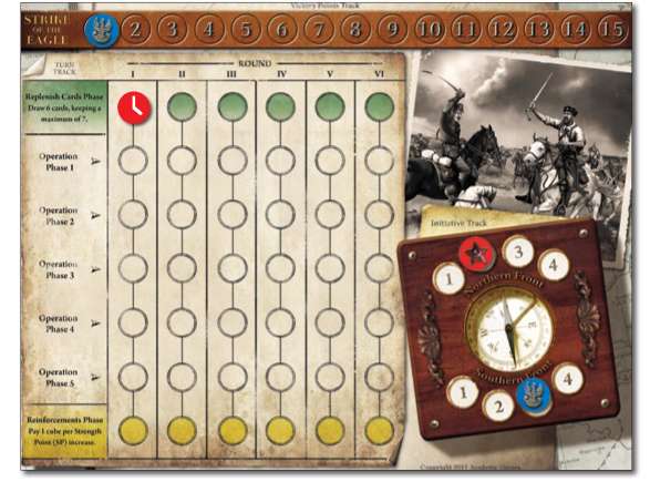 The Initiative Track is divided into the Northern and Southern Front Initiative. It marks which player on each front has initiative.