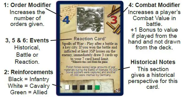 A card may be played from a player's hand at the beginning of an Operation Phase to increase the number of orders a player can give during that phase.