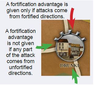 Fortification Bonus: Defending blocks ignore one flanking penalty (7.34) and lose one less Strength Point (SP) during battle if attacked exclusively from fortified directions. No fortification bonus is applied unless ALL attacks come from fortified directions.