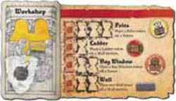 Two Heroes assist in defense of the Stronghold: the Officer and the Warrior. Each of them affects their Wall sections differently. Additionally, each may perform one Heroic Order per Turn to aid the defense. These Orders do not cost Hourglasses and may be used during any Defender phase.