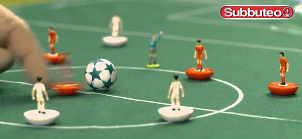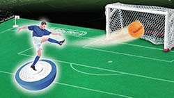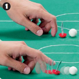 Place tho first or second finger of whichever hand is most comfortable behind the base of a figure. Press down gently on the surface with your 'flicking finger' and flick your finger at the base of the figure so that the figure moves forward and hits (kicks) the ball. Your finger or hand should never touch the ball.