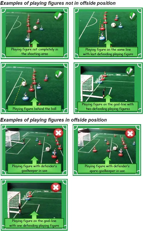 Note: When an attacking team is in possession and sees that he has a figure in an offside position, he can flick that figure into an onside position. Only two 'onside flicks' are allowed during each 'turn'.