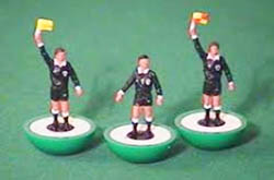If the ball goes over the side line, the last team figure it touches loses possession. The game re-starts with a throw-in. Each team is allowed to flick one figure into position, the attacking team flicking first.