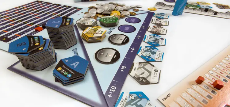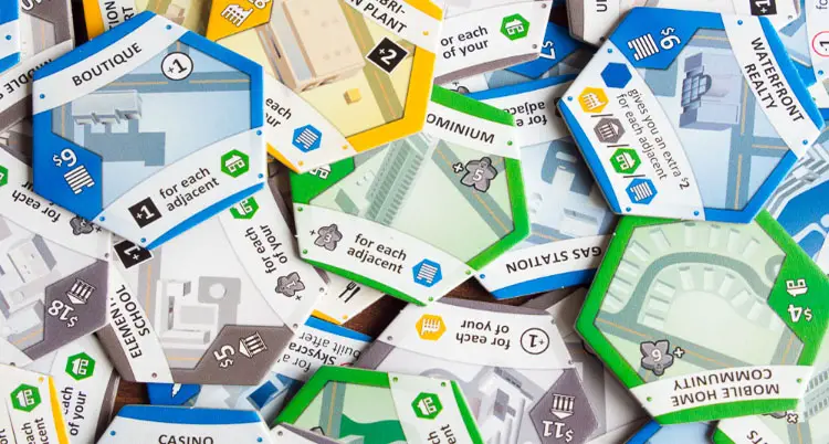 Shue 3 stacks of face down tiles, each stack with a letter on the back (A, B, and C). Each stack has the same number of tiles: 15 for 2 players, 18 for 3 players, and 21 for 4 players.