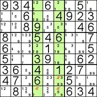We check where 2 can be in the middle blocks. (It's highlighted). You can see that they only lie along two lines (column 4 and 6). |